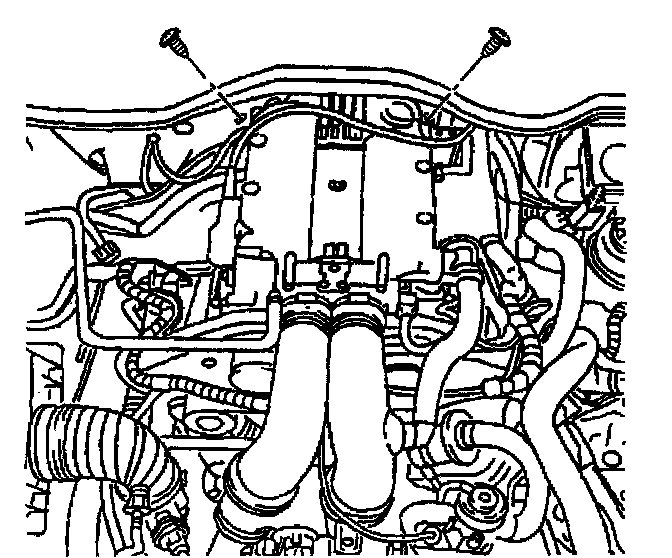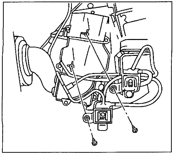 18. Remove the two air distribution module engine compartment screws.