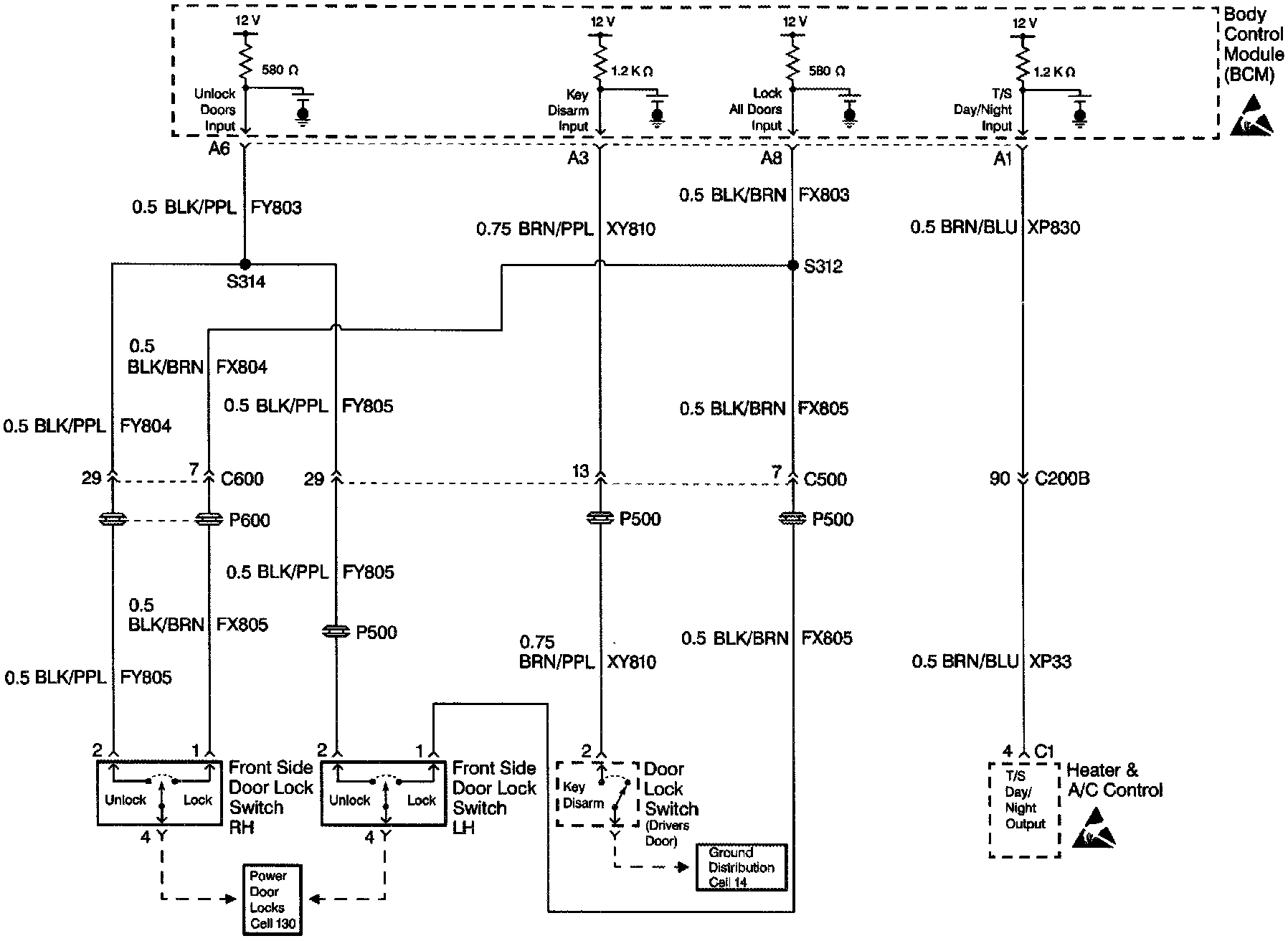 Body Control Module Schematics: Solar/Twilight, RH And LH FR Side Door Lock SW Inputs: