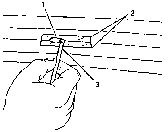 6. Apply the grid repair material (1) to the repair area using a small plastic paddle (3) (or equivalent).
