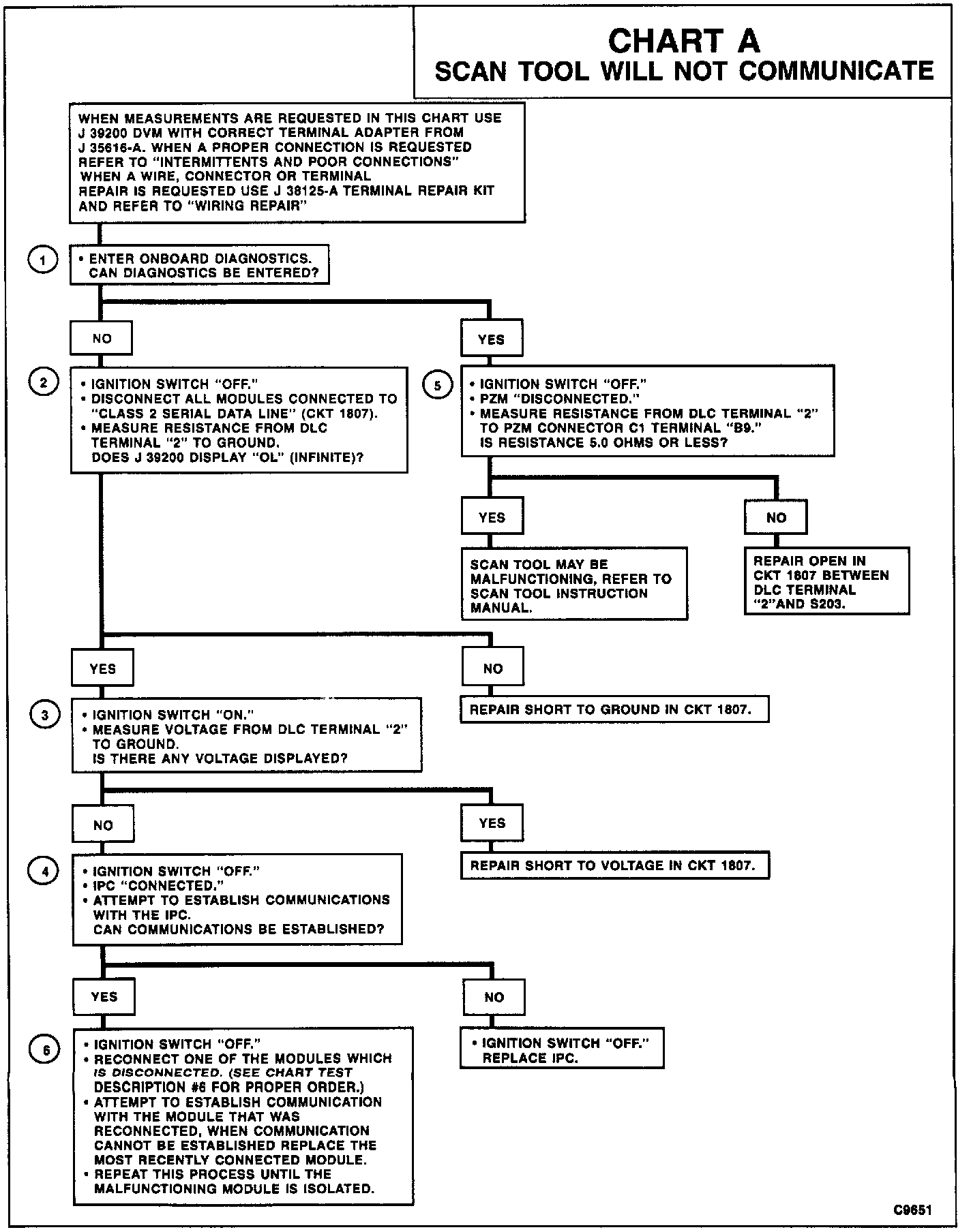 5. This test determines if the scan tool is malfunctioning or CKT 1807 (PPL) is open.
