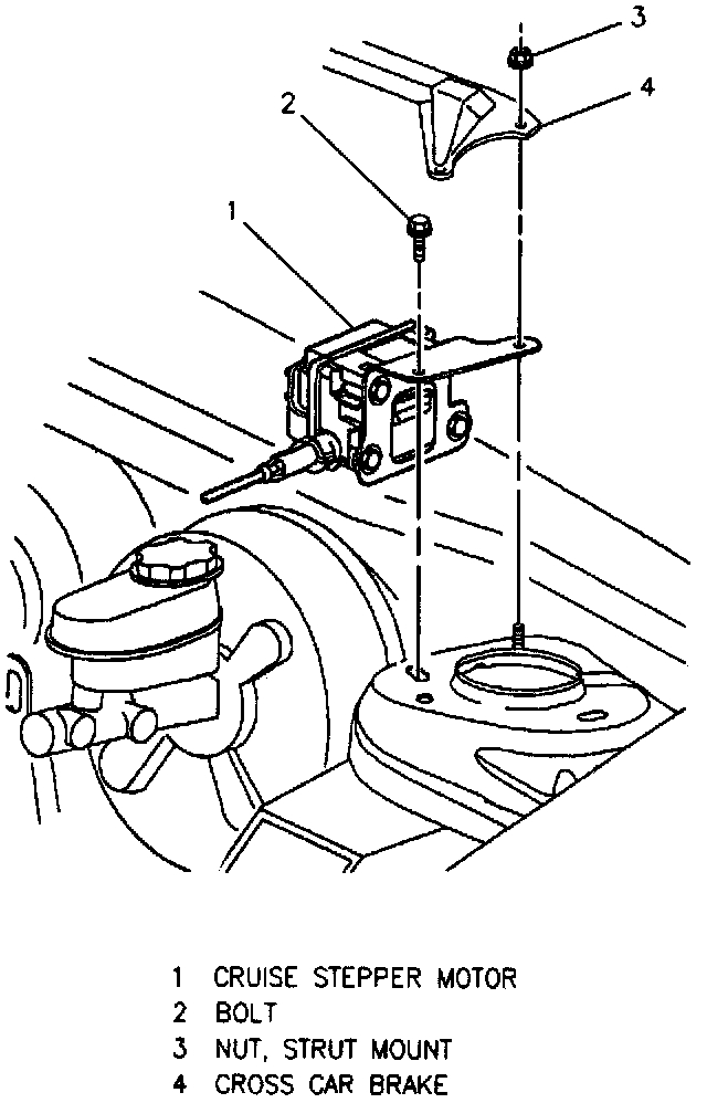 5. Cruise control cable to engine bracket and TBI cam.