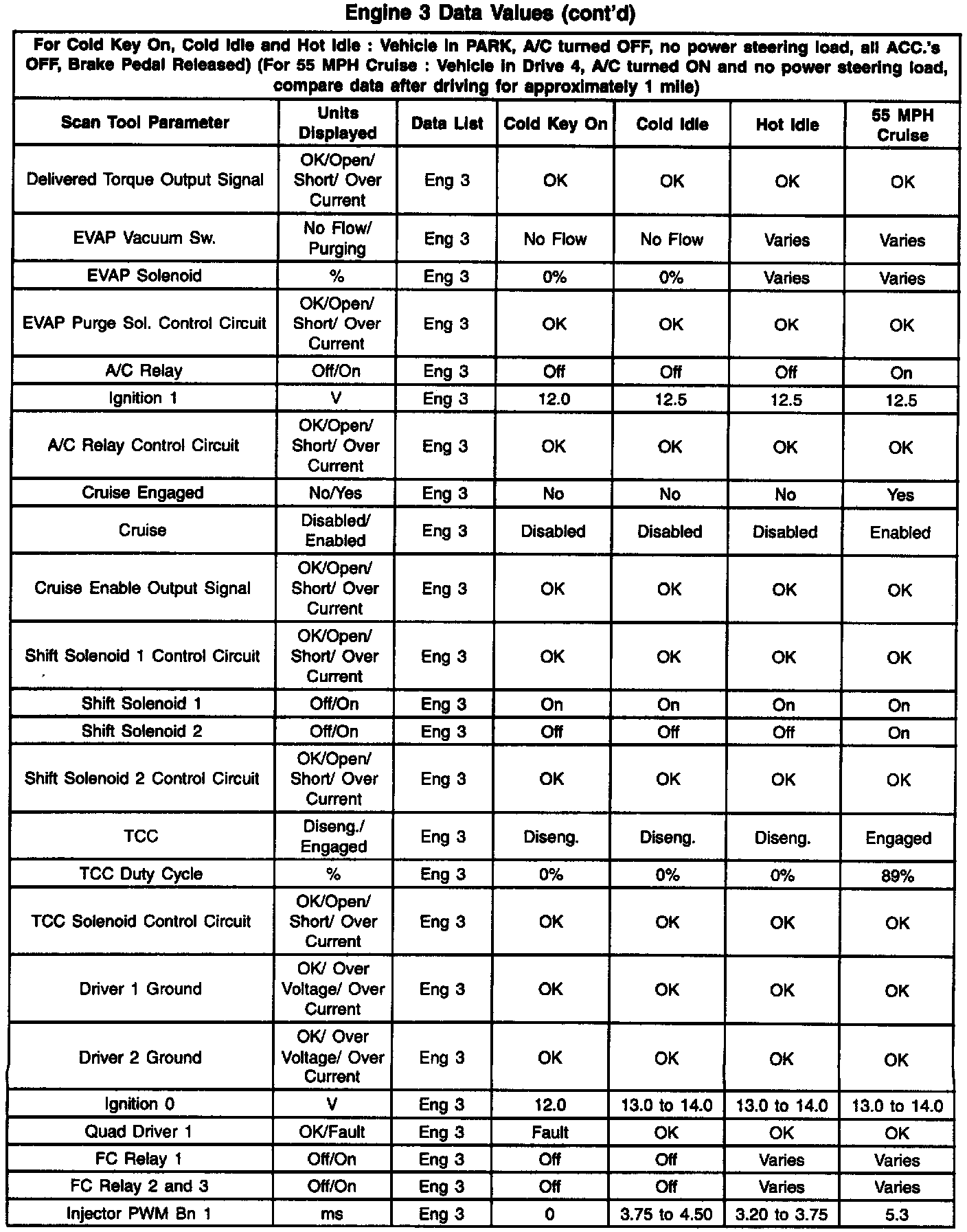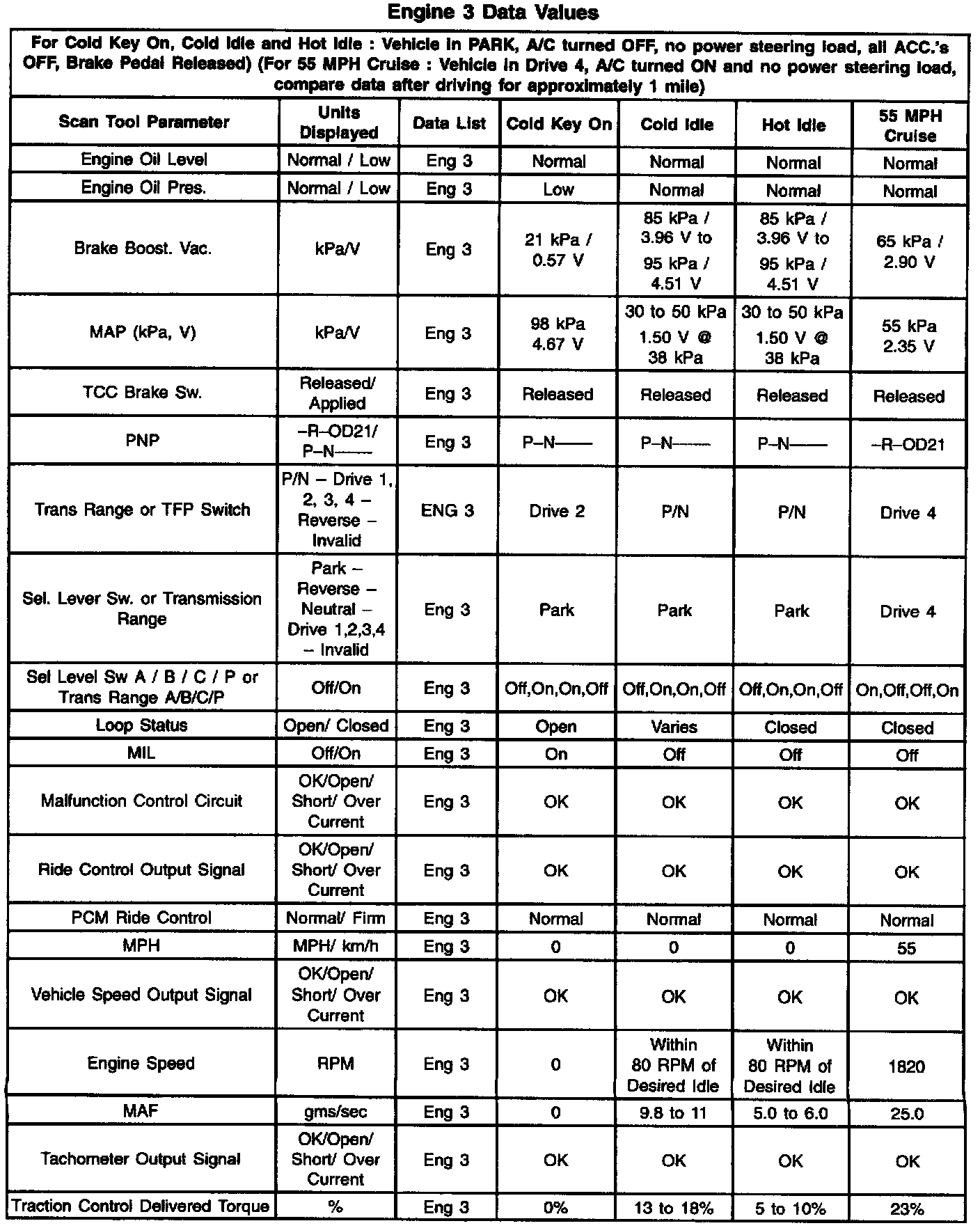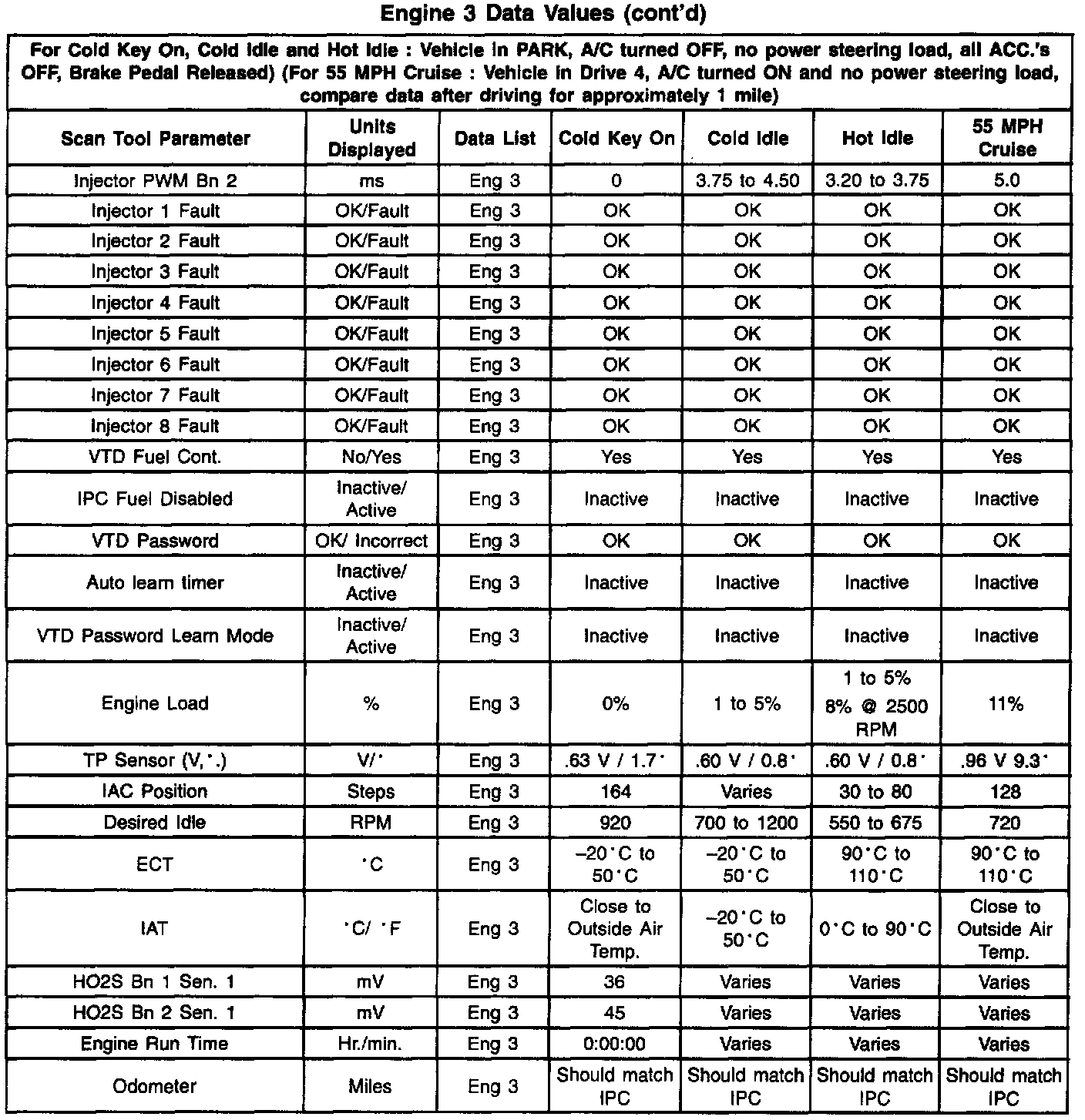 Engine 3 Data Values