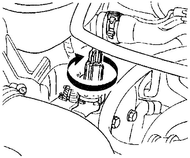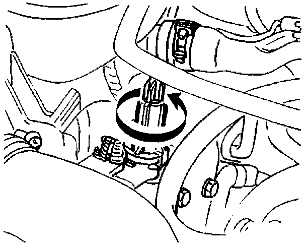 9. Twist the cruise control cable guide tube 1/4 turn counterclockwise in order to remove from the actuator.
