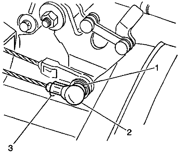 1. Remove the accelerator cable retaining clip (3) from the accelerator cable.