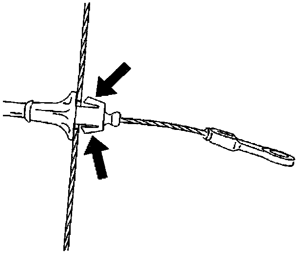 6. Firmly seat the cruise control cable housing into the bracket, ensuring that the lugs expand in the bracket.