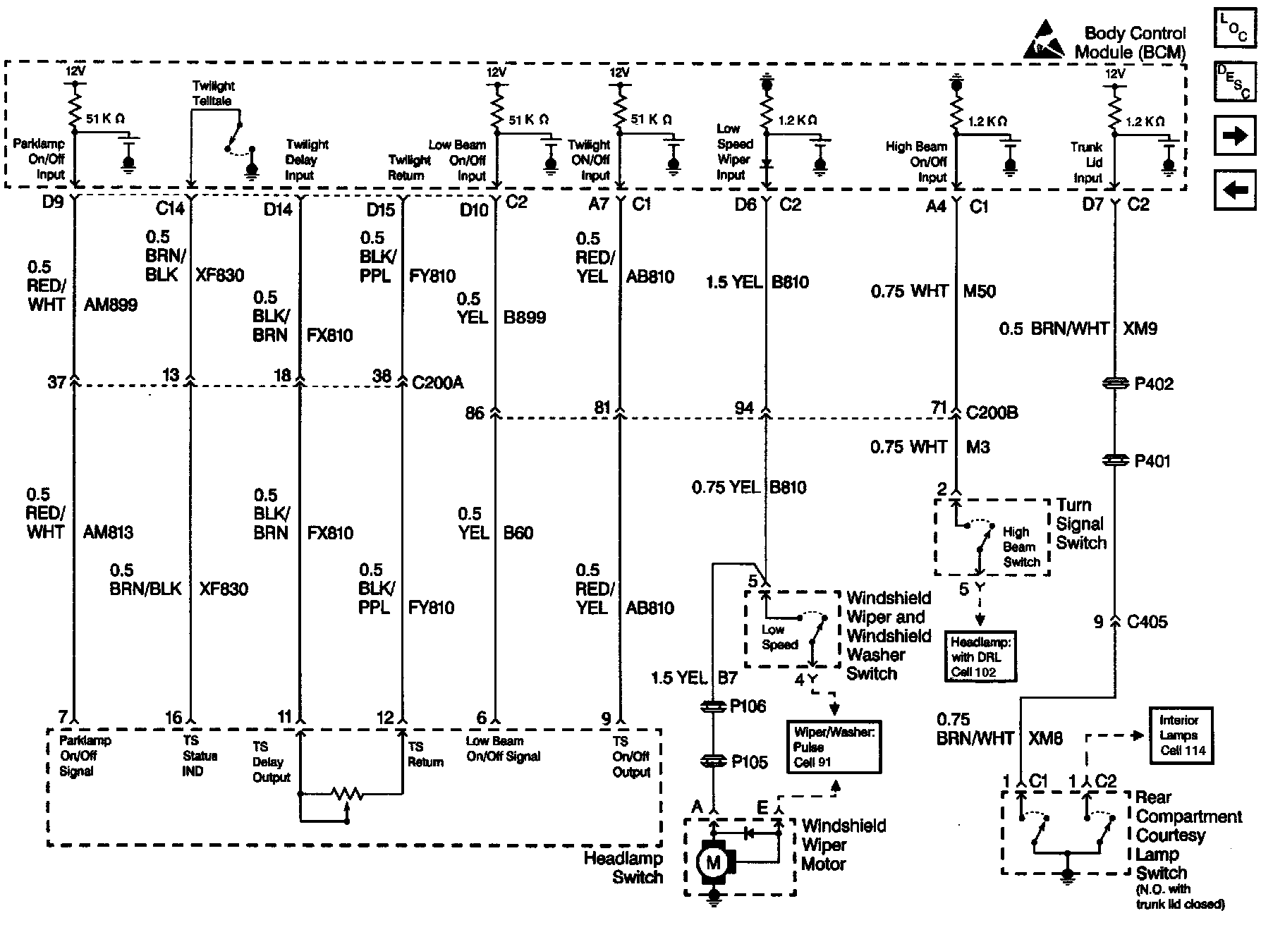 Body Control Module Schematics: Headlamp Switch And Wiper Inputs: