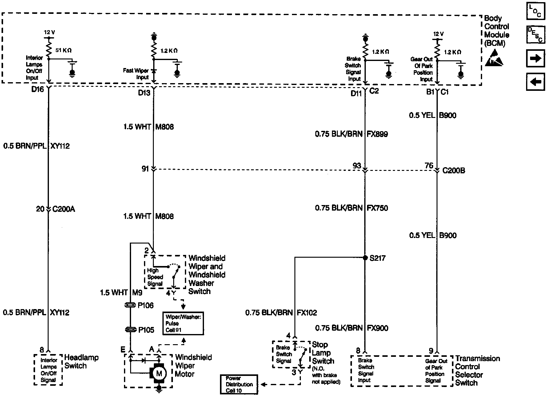 Body Control Module Schematics: Interior Lamps, Fast Wiper, Brake And Gear Switch Inputs: