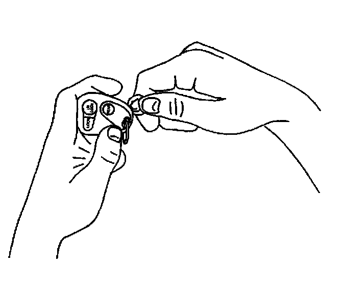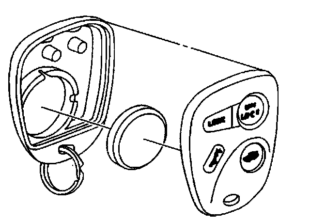 1. Insert a small coin between the 2 halves of the transmitter case at the slot provided near the key ring hole.