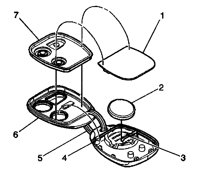 1. Install the battery (2) with the positive (+) side down. Use one 3 V CR2302 battery or the equivalent.