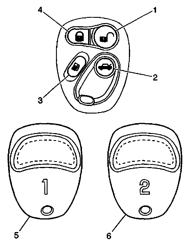 ^ The transmitter is a radio frequency signal generator. The transmitter is battery powered and water resistant. Two transmitters are provided with each vehicle. The remote function actuator (RFA) module uniquely recognizes each transmitter.