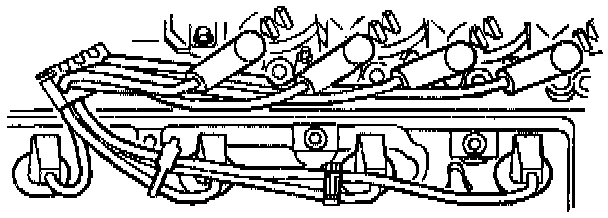 6. Route the left bank spark plug wires as shown to prevent wire damage.
