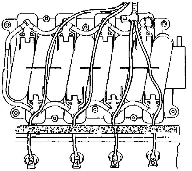 5. The right bank wires must be routed as shown to prevent possible misfires.