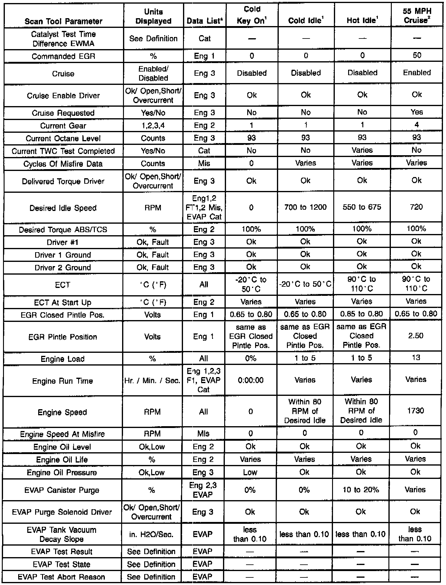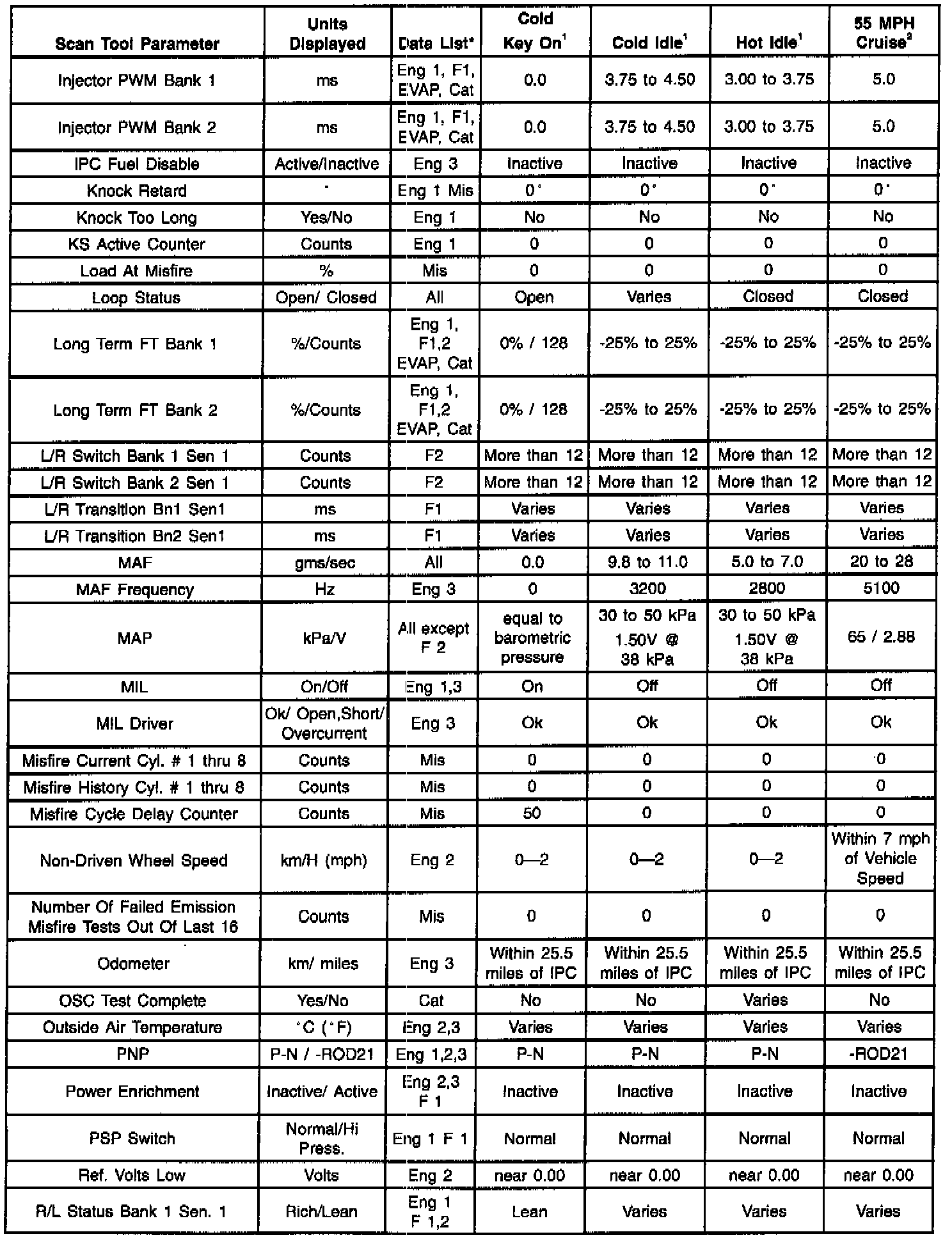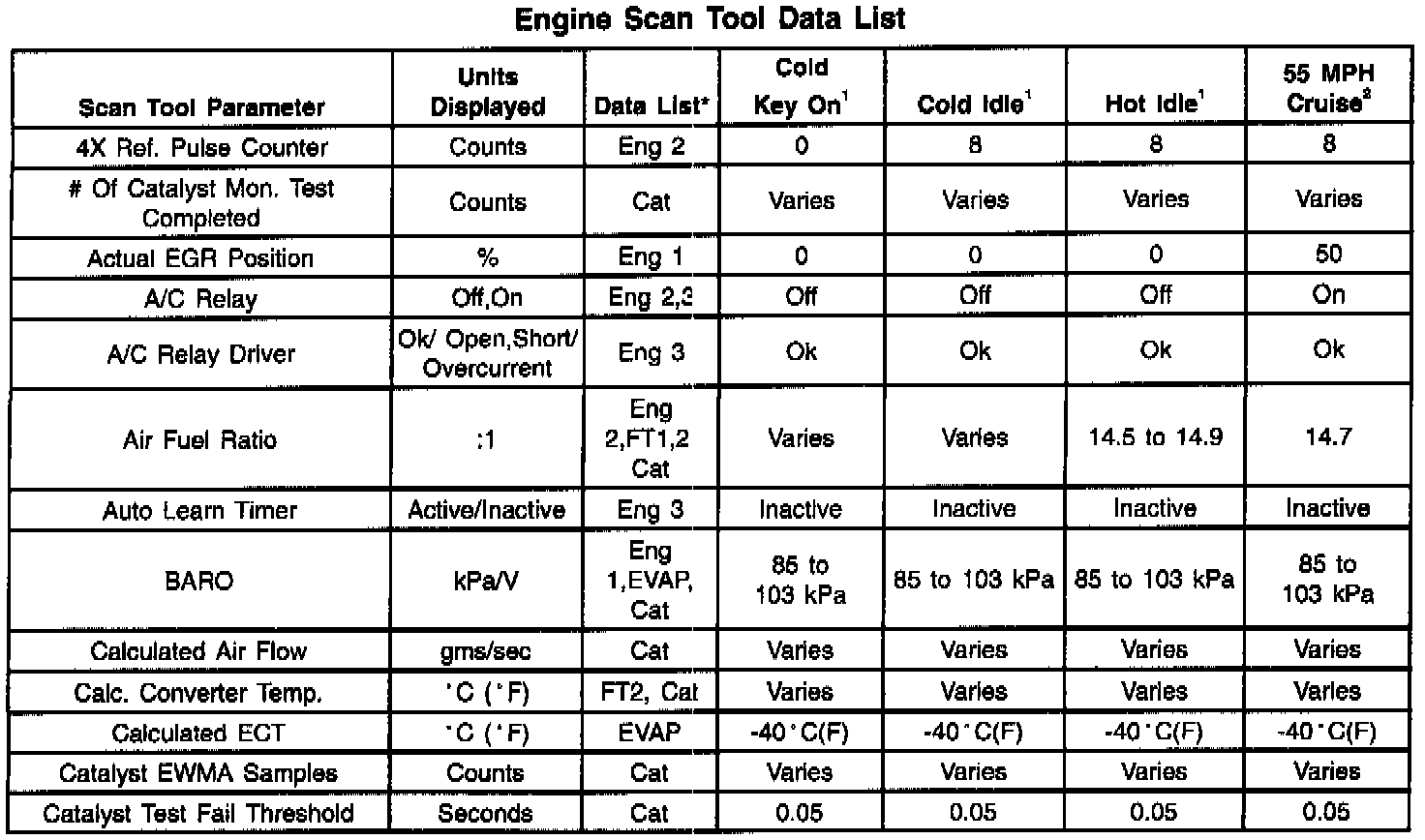 Scan Tool Data List