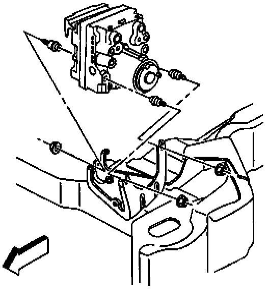 6. Remove the four EBTCM to Brake Pressure Modulator Valve (BPMV) bolts.