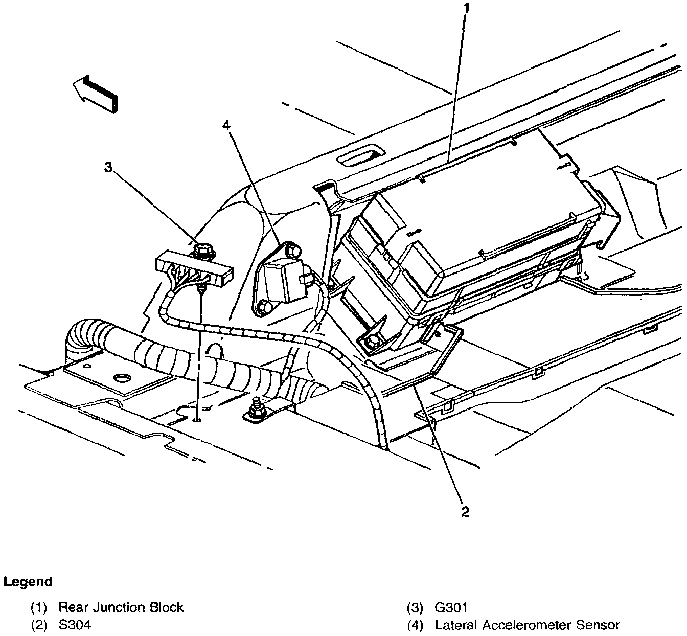 Rear Junction Block, Lateral Accelerometer Sensor, G301 And S304: