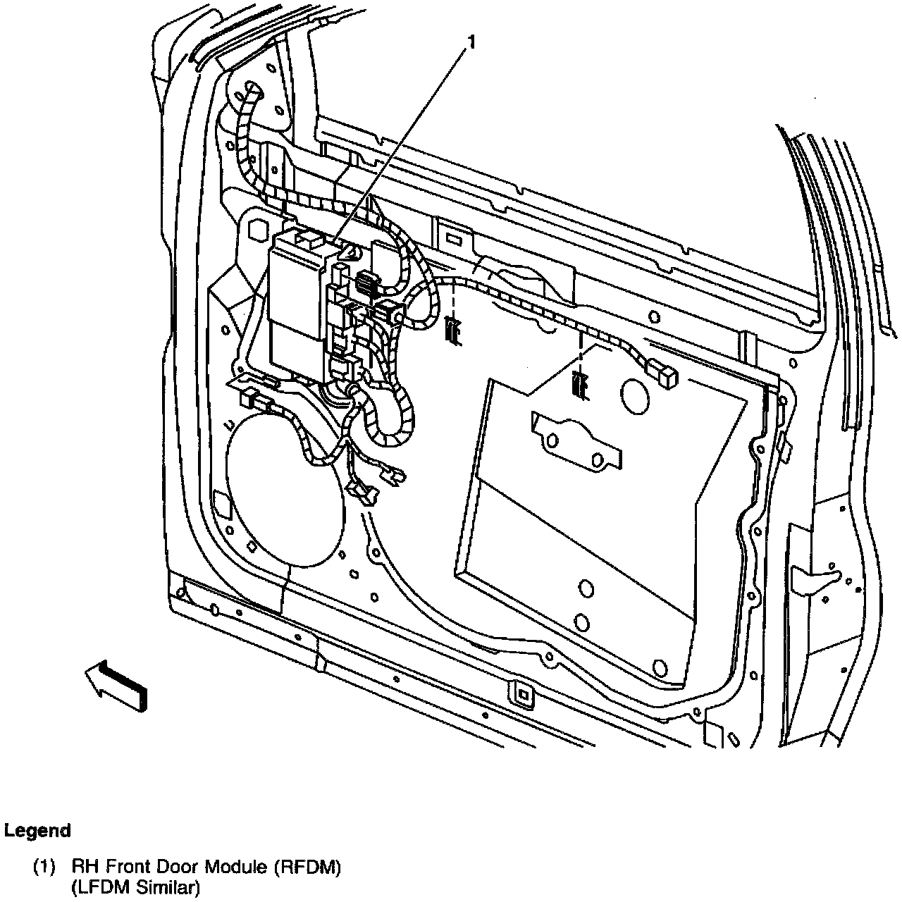 Front of the rear door, behind the door trim panel near the radio speaker