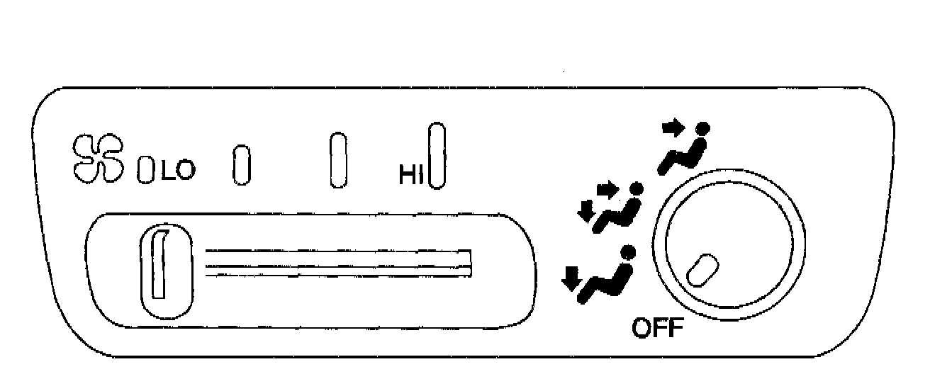 The rear control assembly is located in the rear of the console. The control allows the occupants in the rear seat to adjust the rear blower speed and air discharge location. The user can select from 4 different fan speed and 3 different air discharge locations.