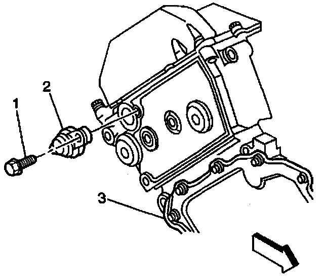 1. Install the cam sensor (2) and retaining bolt (1)