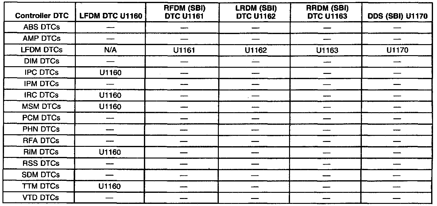 The above charts represent a complete matrix of all Loss of Class 2 Serial Data DTCs. Use these charts as follows: