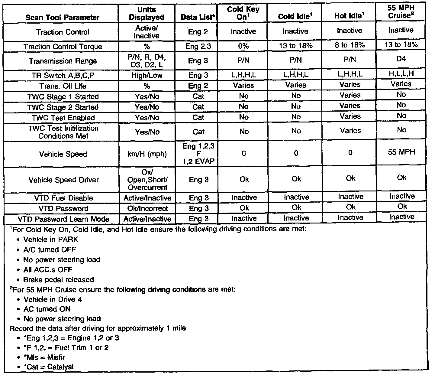 The column labeled Data List indicates where a parameter is located on the scan tool. Refer to the scan tool operating manual for instructions on how to access the individual data lists. The following is a description of each term listed:
