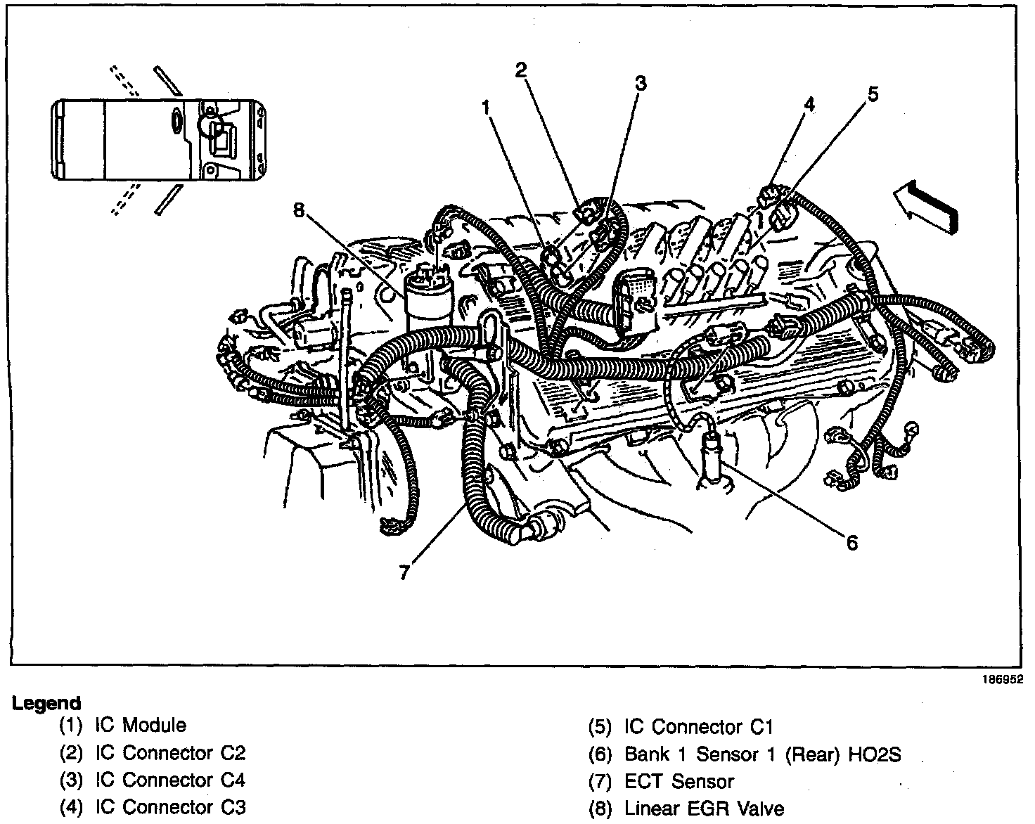 Center rear of the engine, under the ignition coils on the rear cam cover