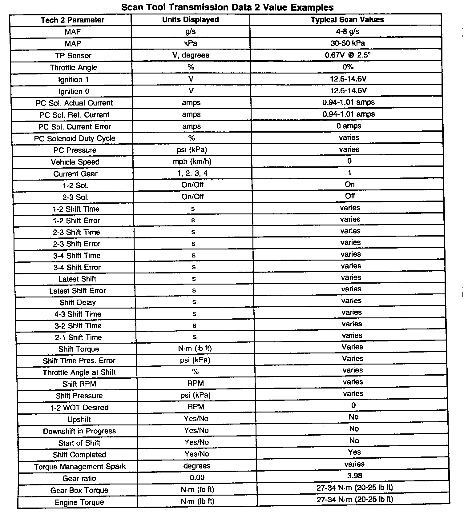SCAN TOOL TRANSMISSION DATA 2 VALUE EXAMPLES