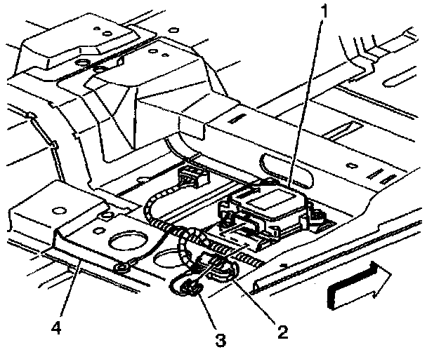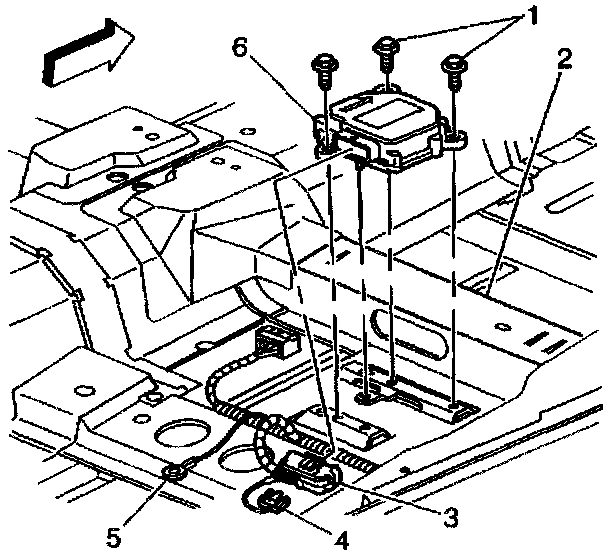 1. Install the SDM (6) to the floor sheetmetal (2).