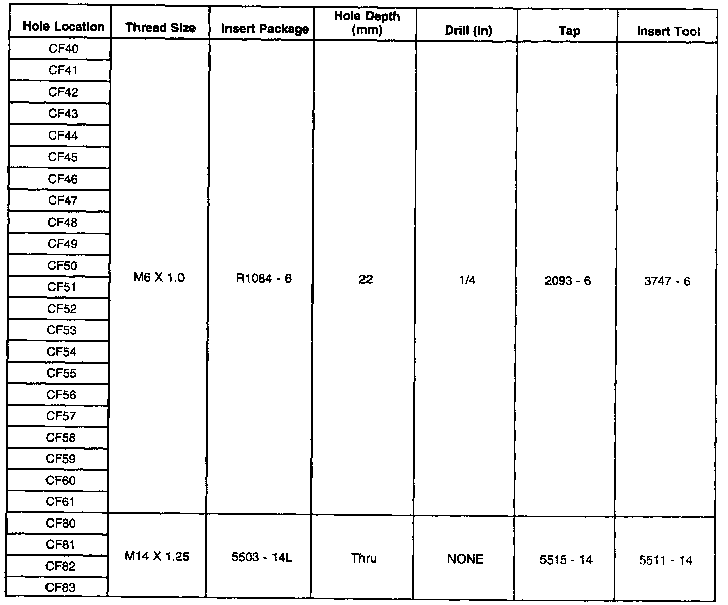 Thread Repair Specifications