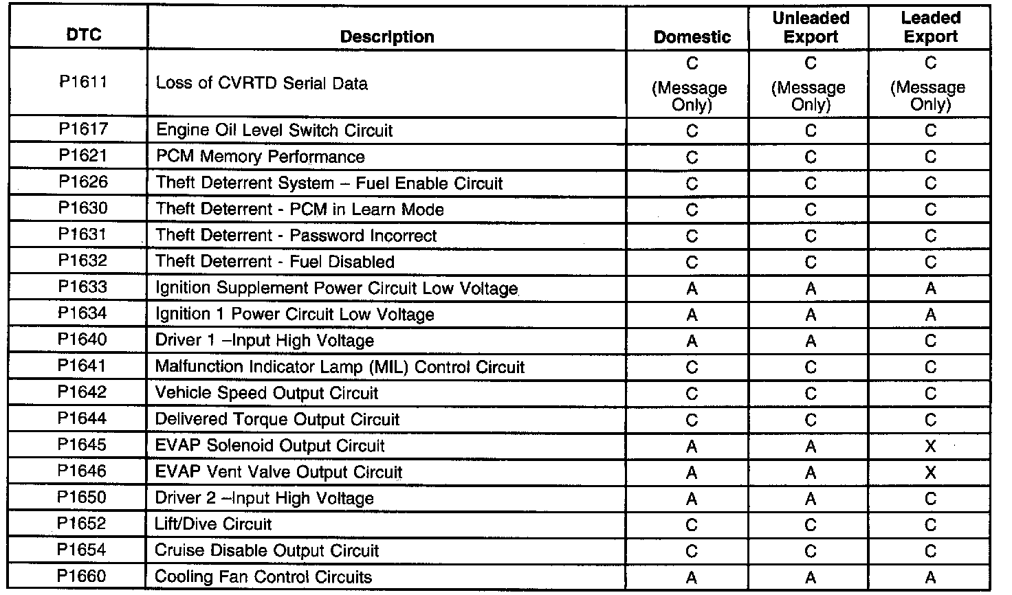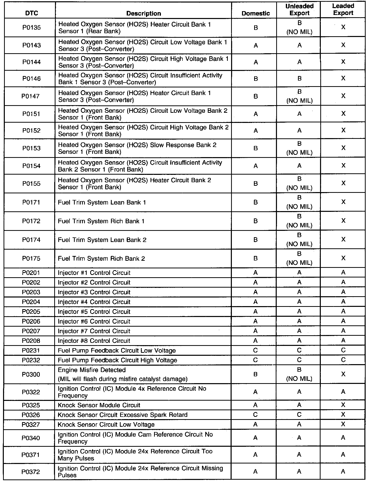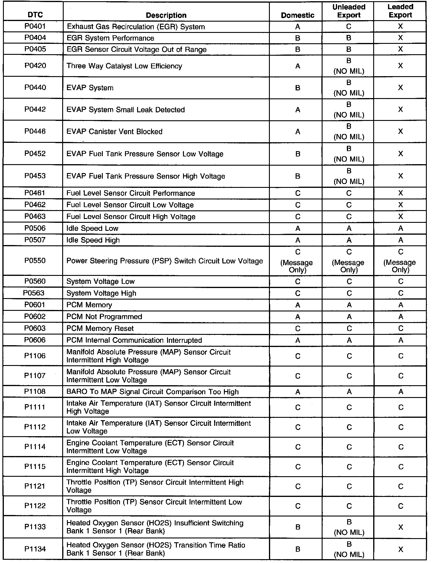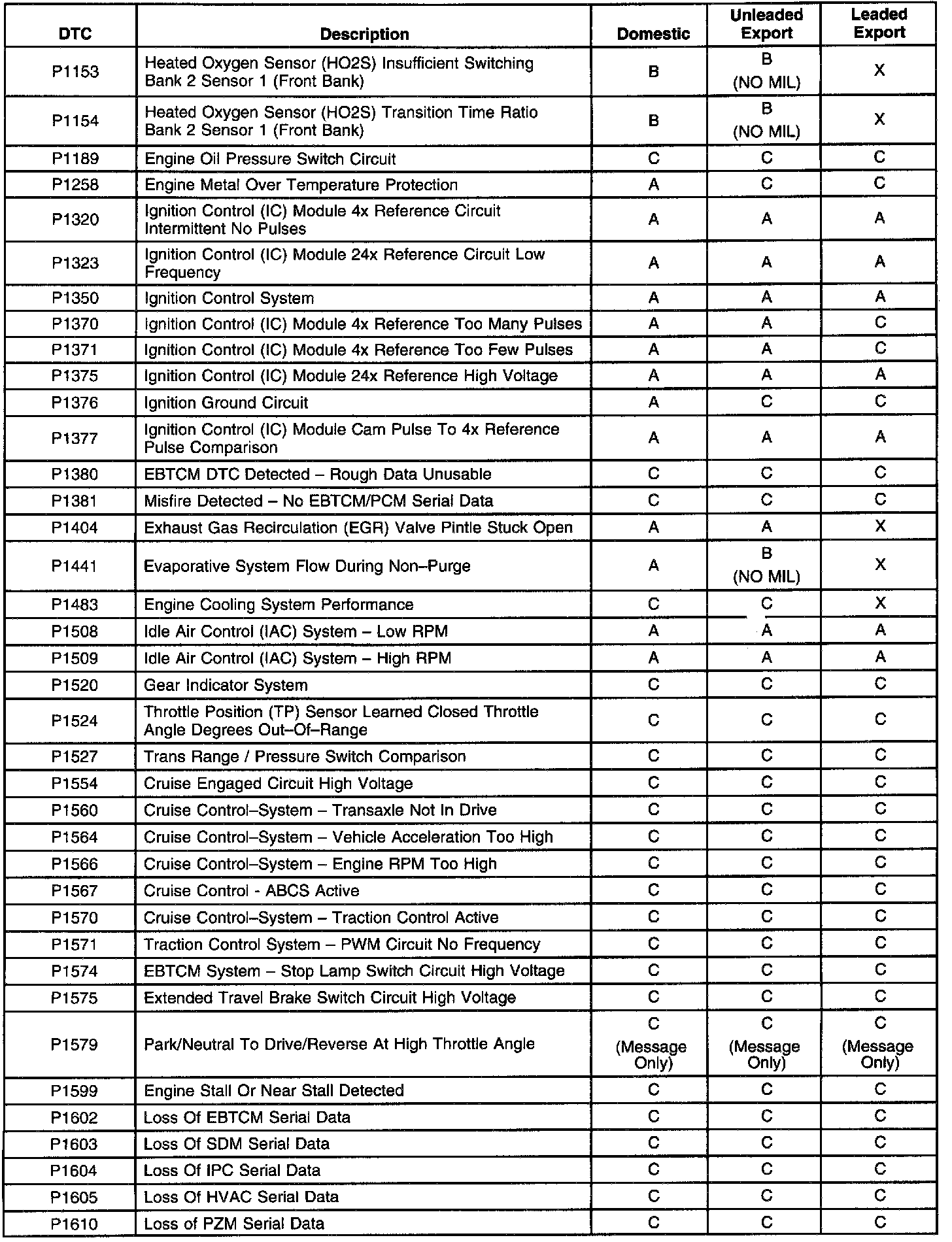 When a Type A DTC diagnostic fails, the DTC is set immediately and the MIL is illuminated. When a Type B DTC diagnostic fails, the MIL will illuminate if the fault is present after two consecutive drive trips. When a Type C DTC diagnostic tails, the DTC will set immediately but will not illuminate the MIL. For some Type C DTCs only a message will appear on the Driver Information Center (DIC). Type C DTCs that DO NOT display a message were formerly referred to as Type D. For more information regarding DTC types refer to Powertrain Control Module / Description and Operation.