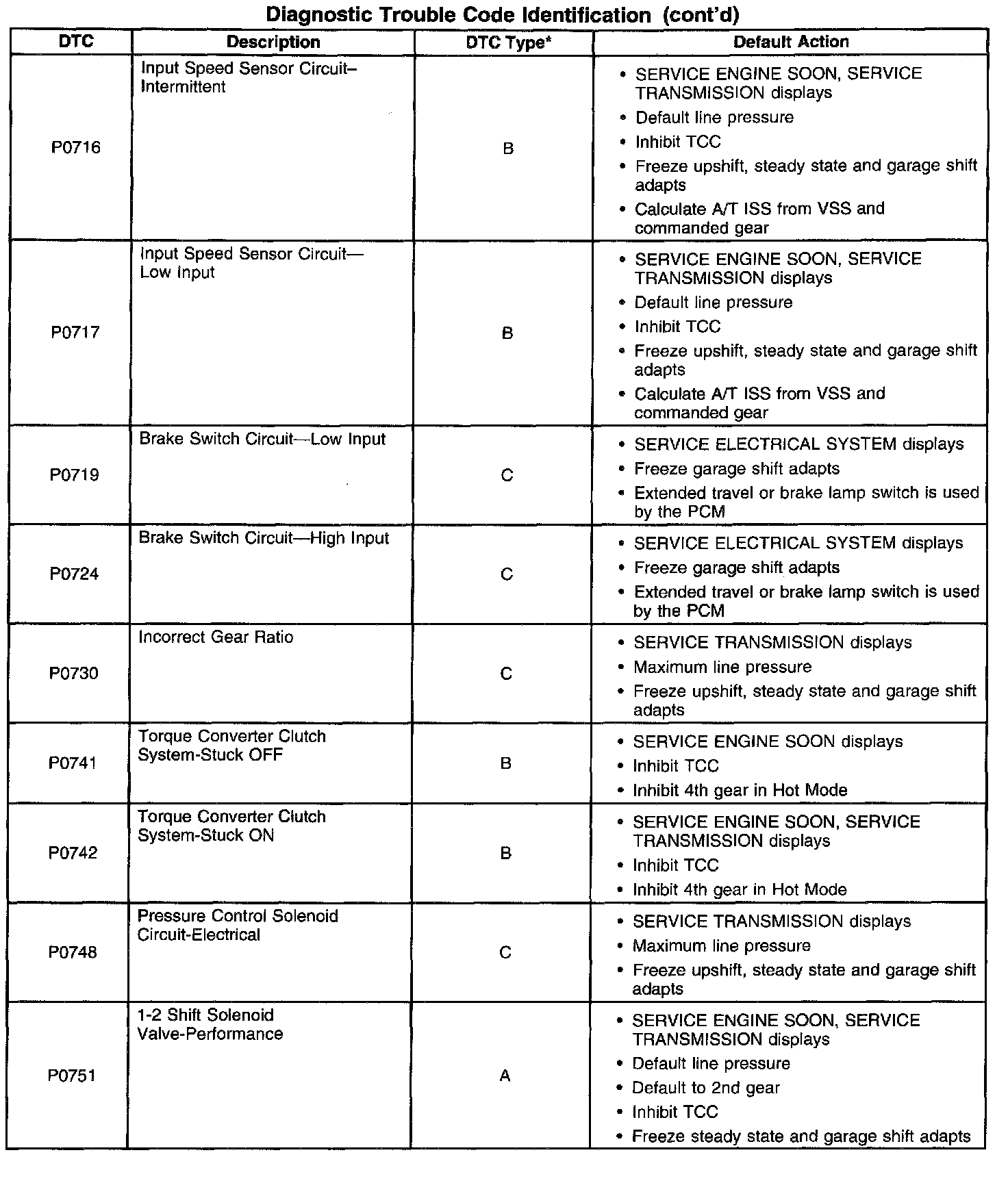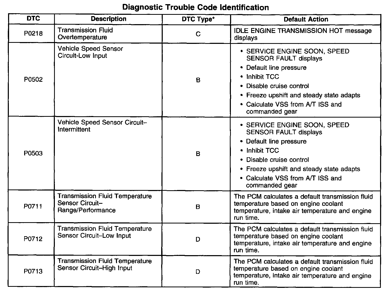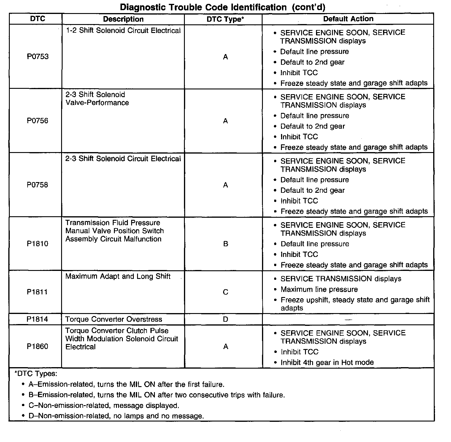 Transmission Trouble Code Description