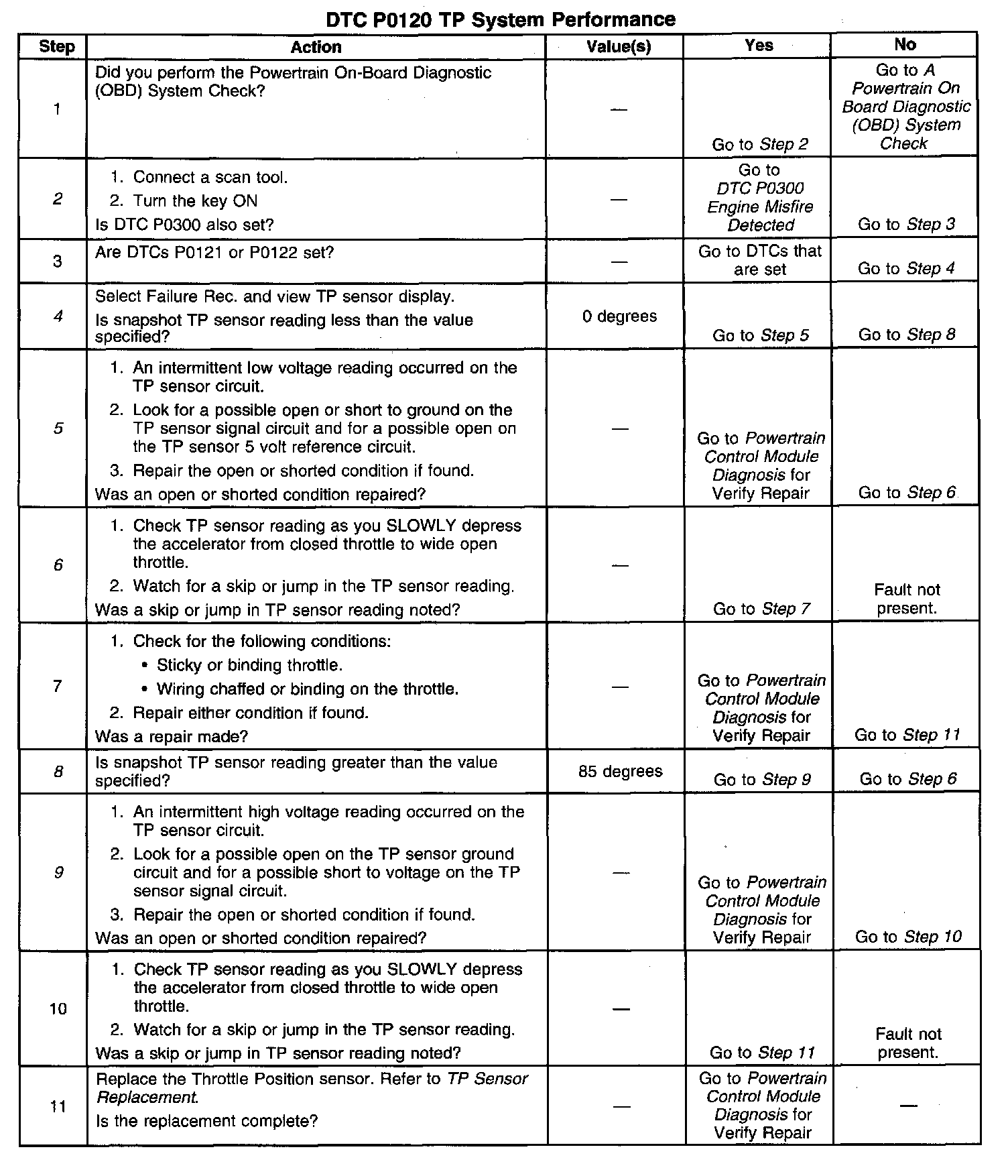 2. Since a misfire can cause DTC P0120 to set, if a misfire has occurred, it should be diagnosed first.