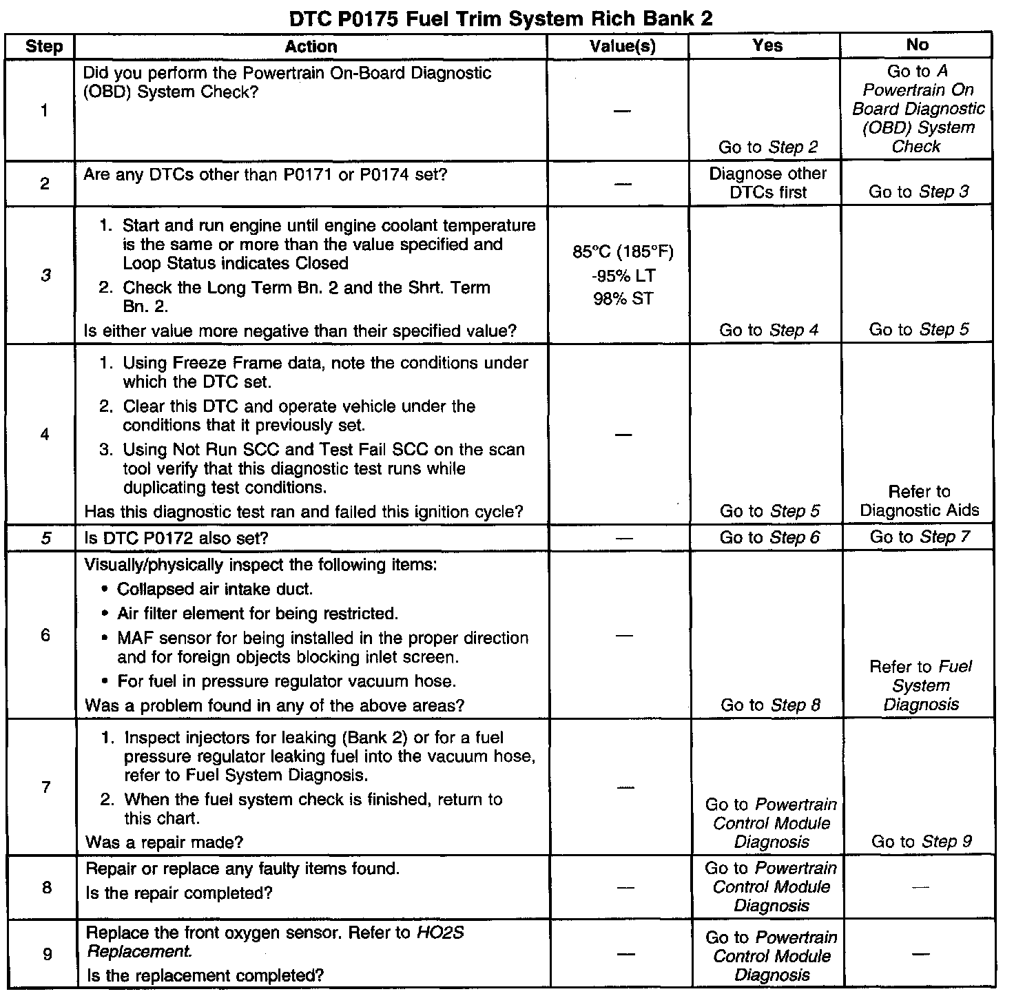 5. If DTC P0172 is also set indicates both banks are operating rich. Inspect items that would cause both banks to operate rich.