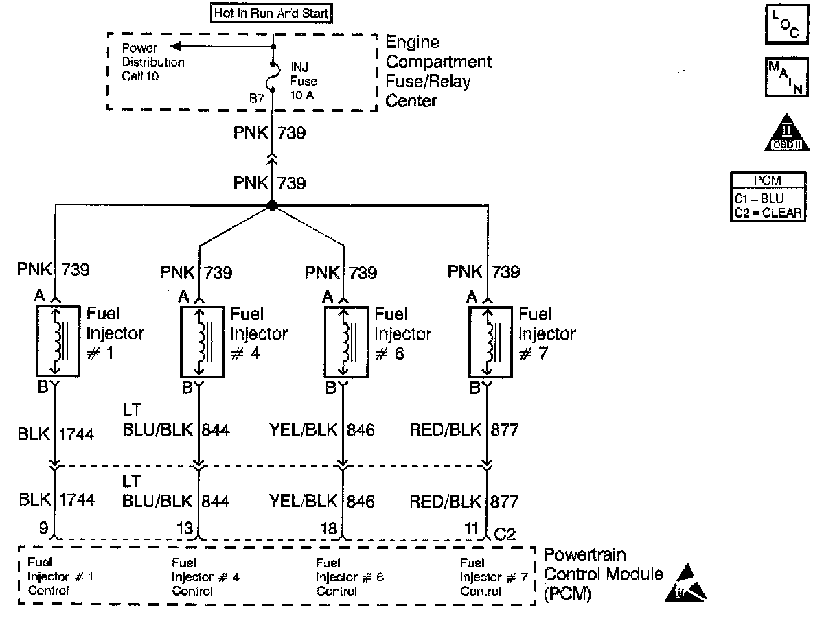2. If DTCs P0201, P0204 and P0207 are also set, power must be disabled to injectors 1, 4, 6 and 7.