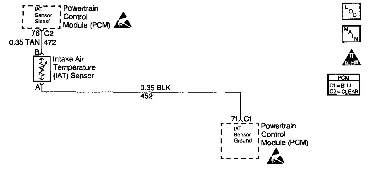 The Intake Air Temperature (IAT) sensor is a thermistor, or variable resistor, that varies resistance based on temperature. Low temperature will result in a high signal voltage. If the IAT reading is -35°C (-31°F)or lower with the ECT sufficiently hotter than the IAT, the PCM sets DTC P1111.