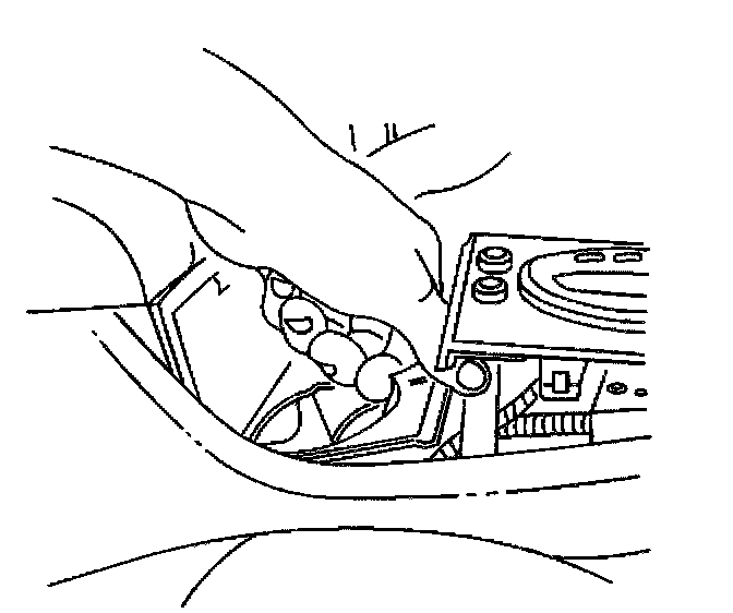 REMOVAL PROCEDURE1. Disengage the retaining clips on the rear of the console center trim plate by pulling upward in order to allow access for cup holder removal.