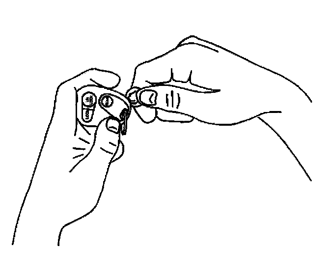 1. Insert a small coin between the 2 halves of the transmitter case at the slot provided near the key ring hole.
