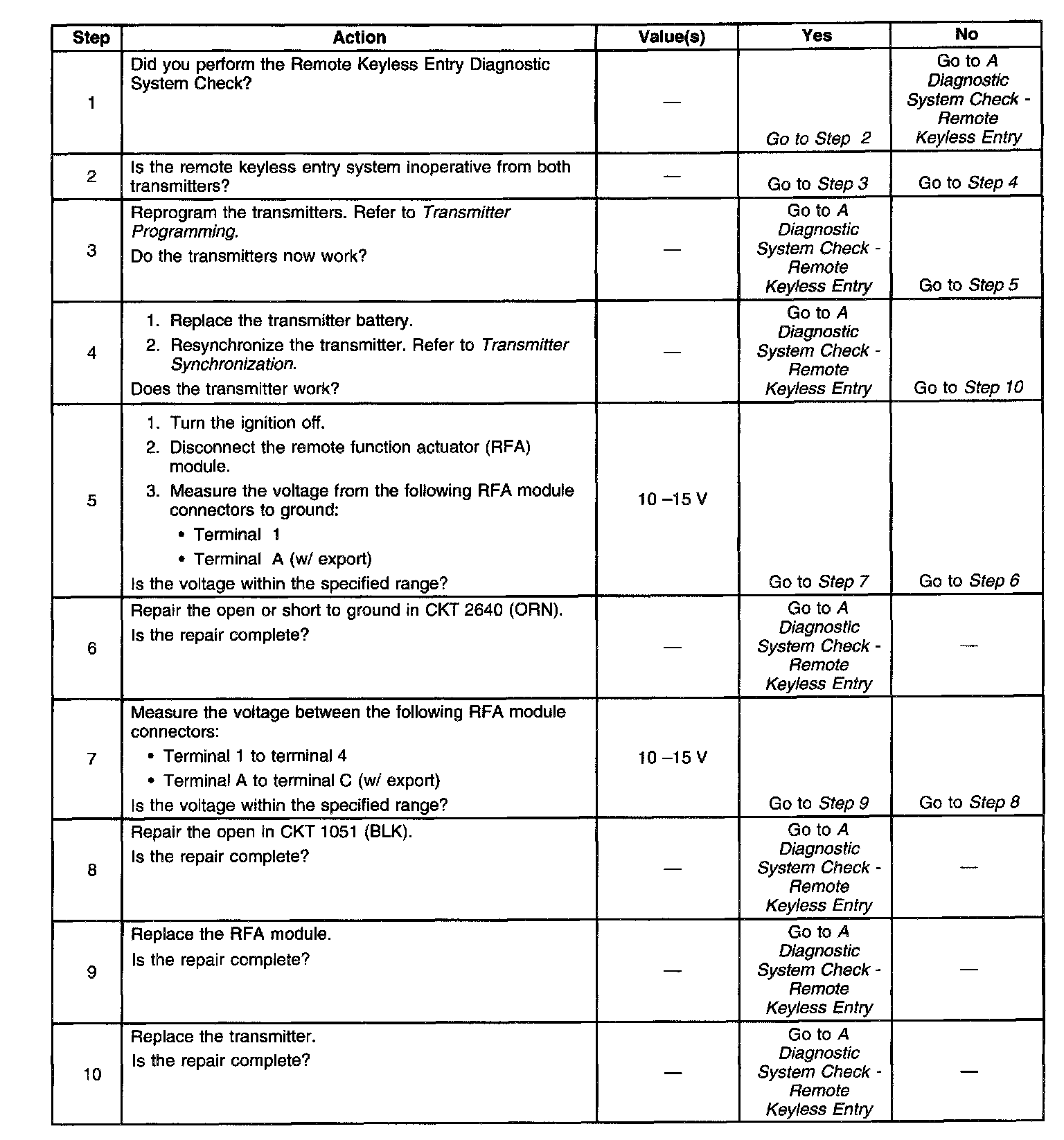 Remote Keyless Entry System Inoperative:
