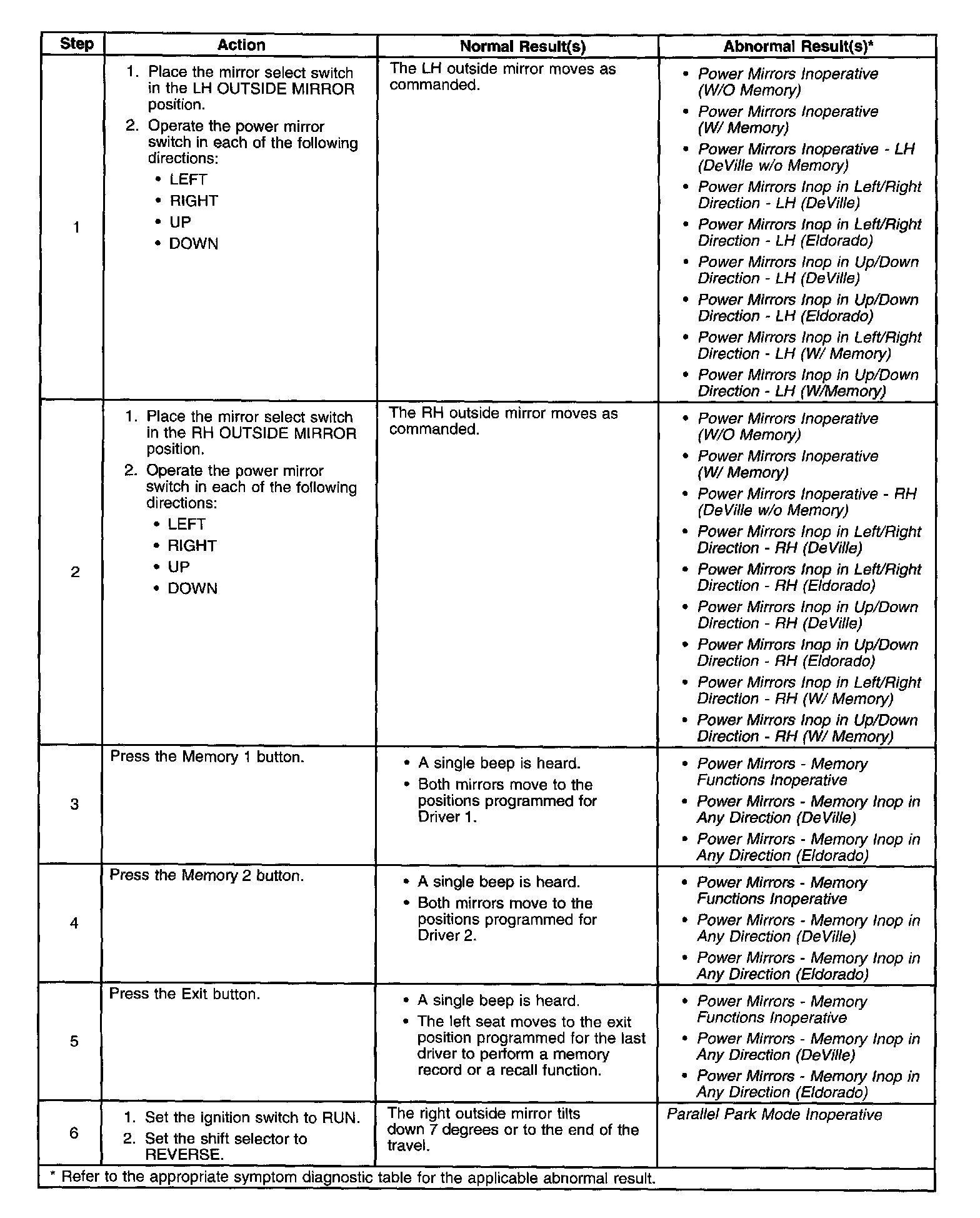 Outside Mirrors System Check: