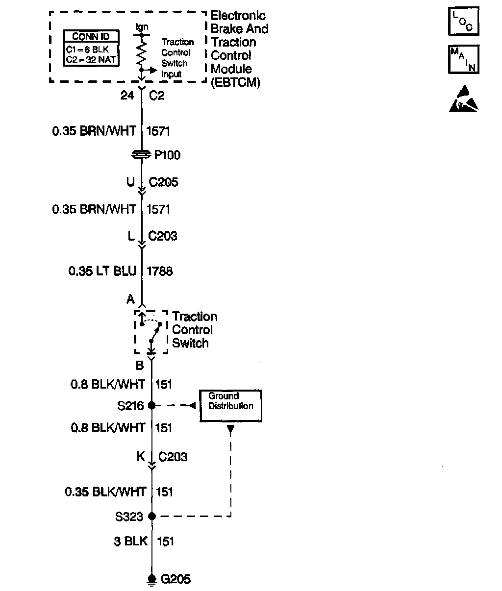 The TRACTION OFF message is controlled by the EBTCM. When the EBTCM sees the Traction Control Switch Input grounded through the momentary traction control switch, it disables Traction Control and sends a class 2 serial data message to the instrument cluster (IPC) to turn the TRACTION OFF message on. Each time the ignition switch is cycled OFF to ON, Traction Control is enabled.