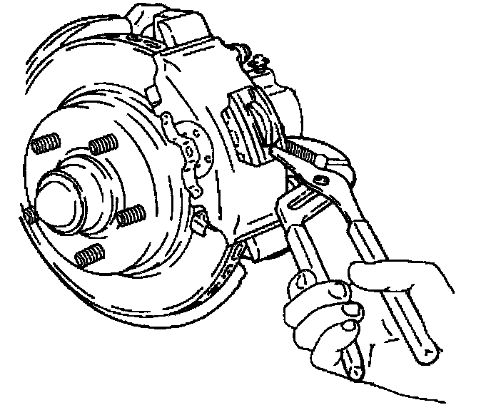 4. Compress the piston using adjustable pliers over the inboard lining tab and the caliper housing flange.