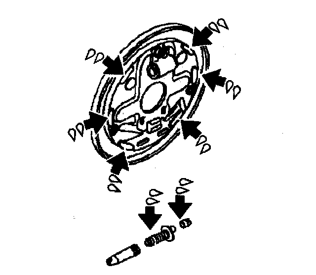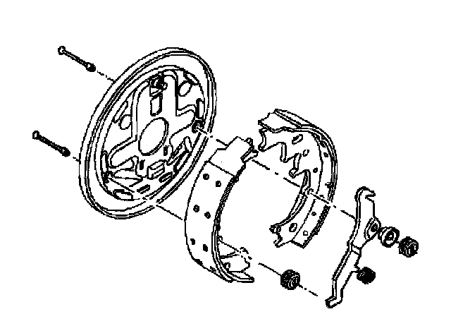 2. Install the adjusting screw assembly and the adjusting screw spring to both shoes. The coils of the adjusting screw spring must not touch the adjusting screw.