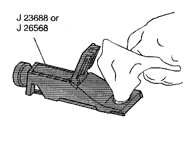 1. Release the tip of the pump from the housing of the J 23688 or the J 26568.