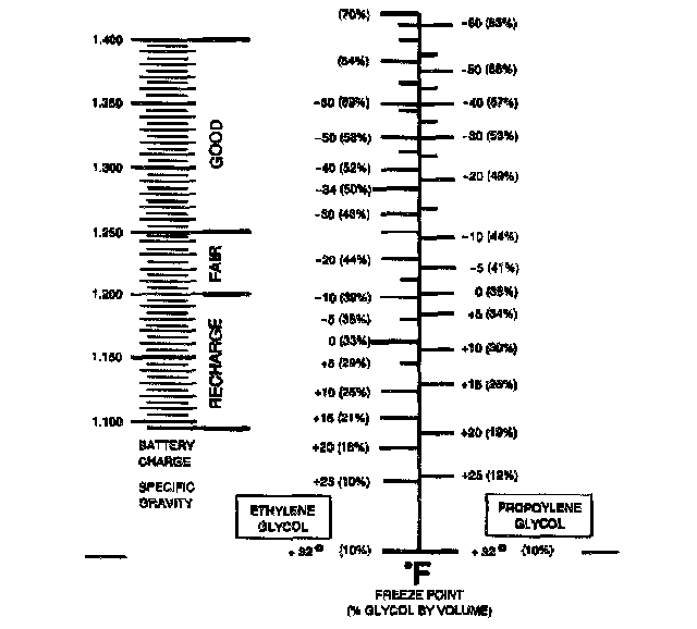 - The coolant protection reading is at the point where the dividing line between light and dark crosses the scale. Antifreeze protection is the scale on the right.