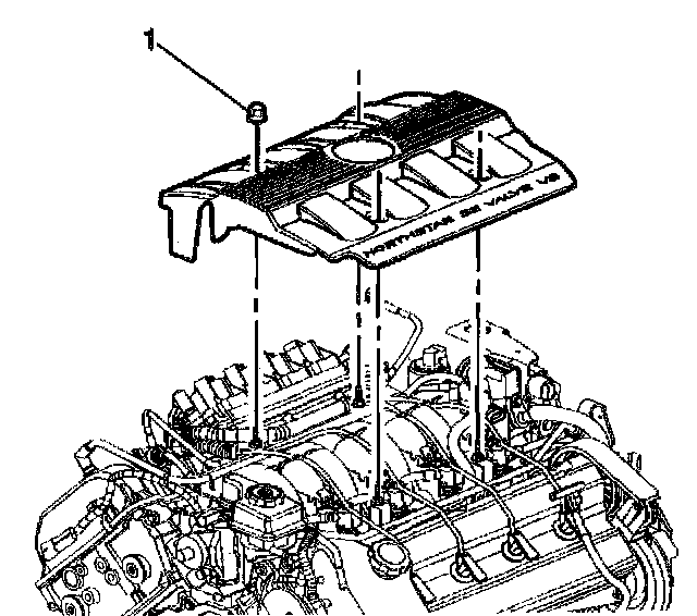 1. Remove the intake manifold sight shield retaining nuts (1).