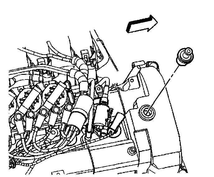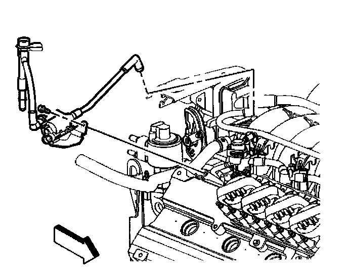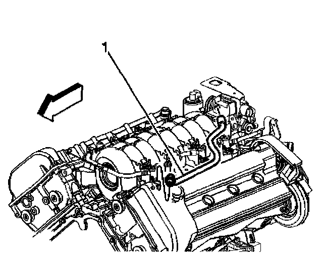 5. Disconnect the PCV fresh air feed tube (1) from the camshaft cover and intake manifold.