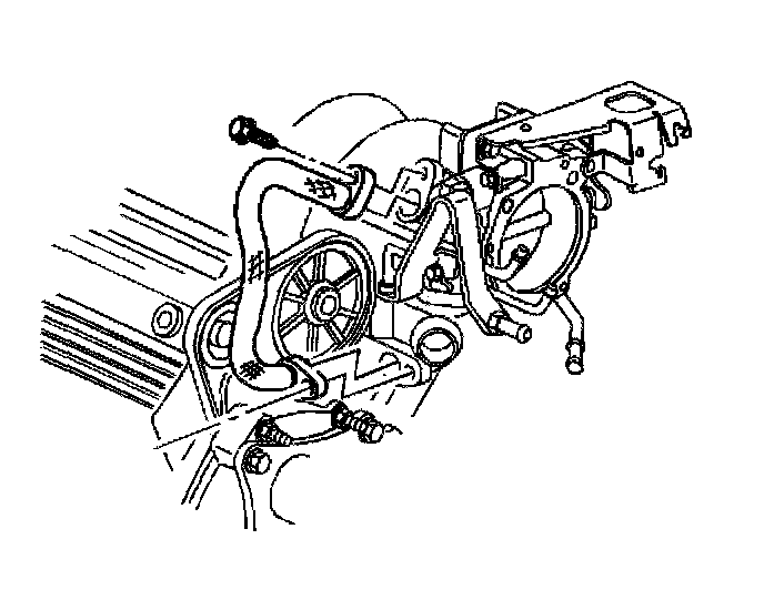 9. Disconnect the fuel rail bracket retaining nut at the inner EGR mounting stud.