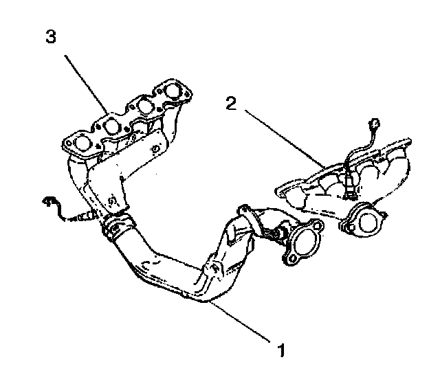 2. Remove two bolts from the left exhaust manifold (3).
