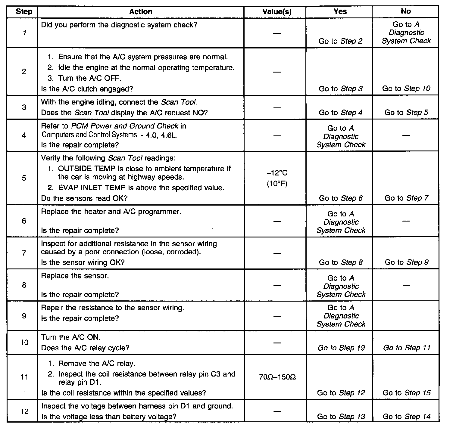 1. Before you begin to diagnose the problem, correct and clear all DTCs. An open power steering switch or a faulty throttle position sensor could prevent the A/C clutch from engaging.