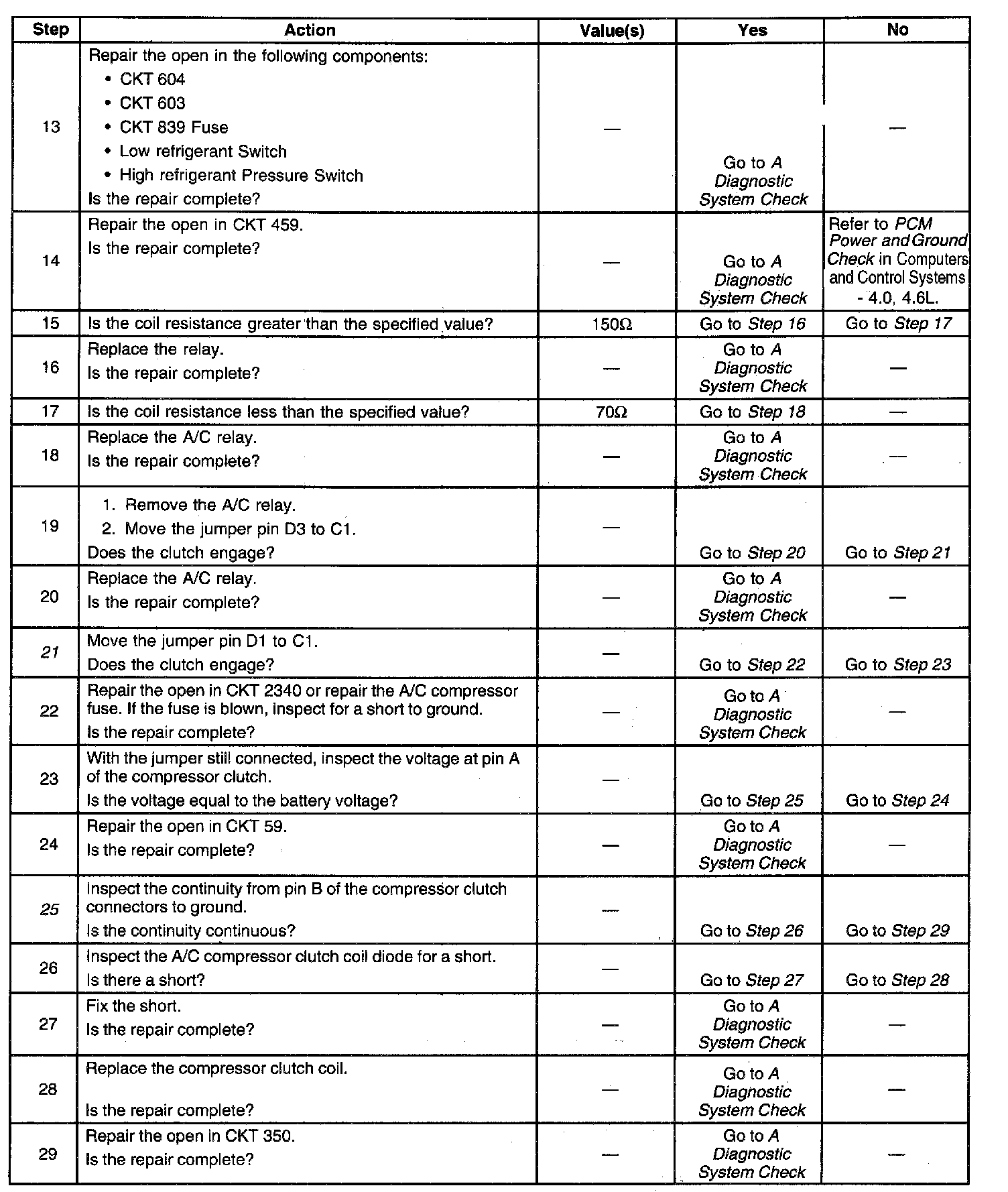 25. Determine whether the compressor clutch is faulty. Test for an open in ground CKT 350.