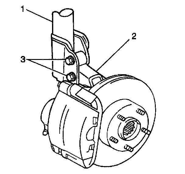 1. Loosen both strut to knuckle nuts (3) and drive the bolt partially out of the knuckle.